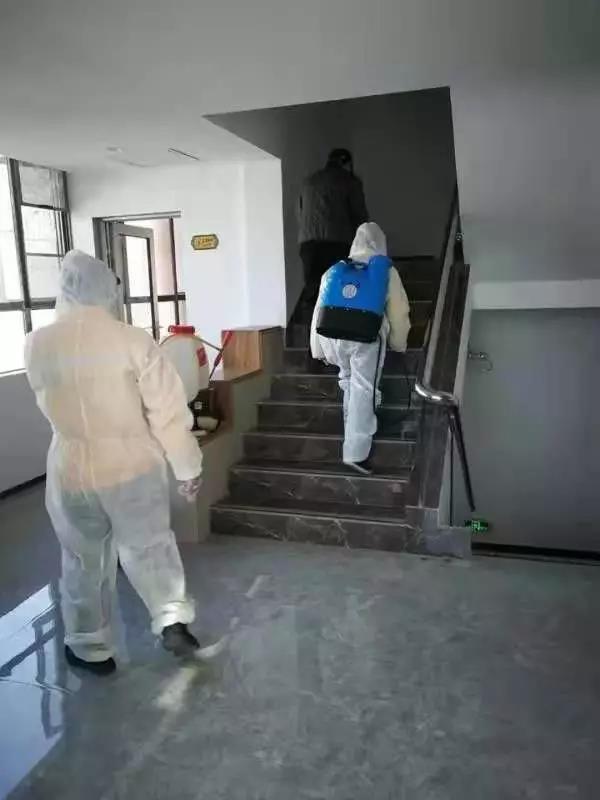▲领秀物业对办公大楼进行全面消毒