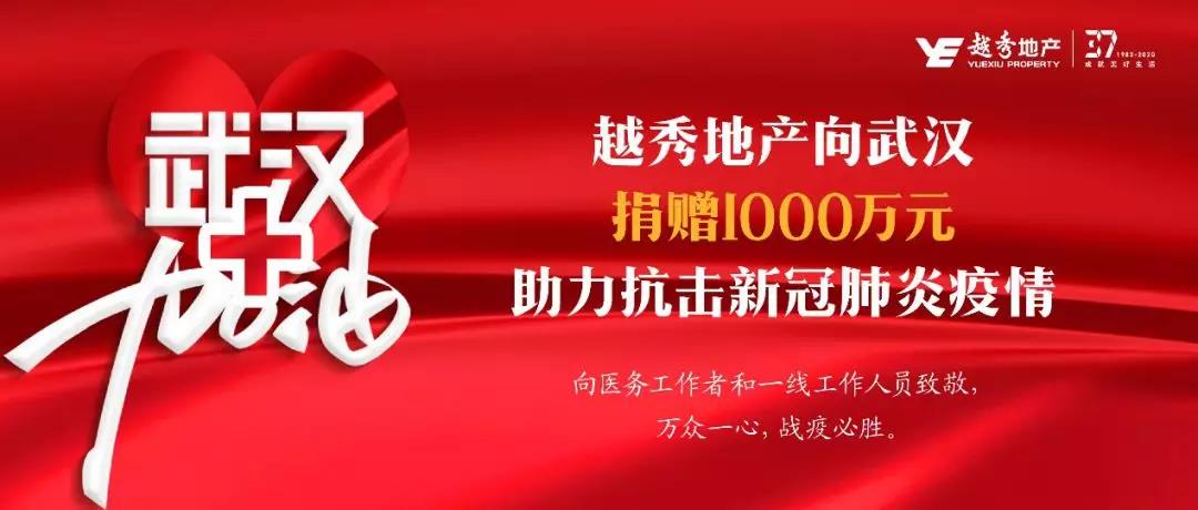 疫情无情人有情!1月30日,越秀地产向武汉市捐赠1000万元,帮助武汉抗击新型冠状病毒感染肺炎疫情。该笔捐款将用于支援武汉地区疫情防控工作,采购短缺医疗设备和物资,支援一线医护人员,为当地人民群众的安全和健康贡献一份力量。