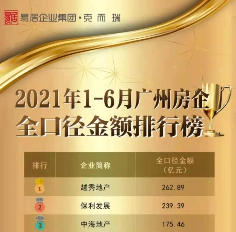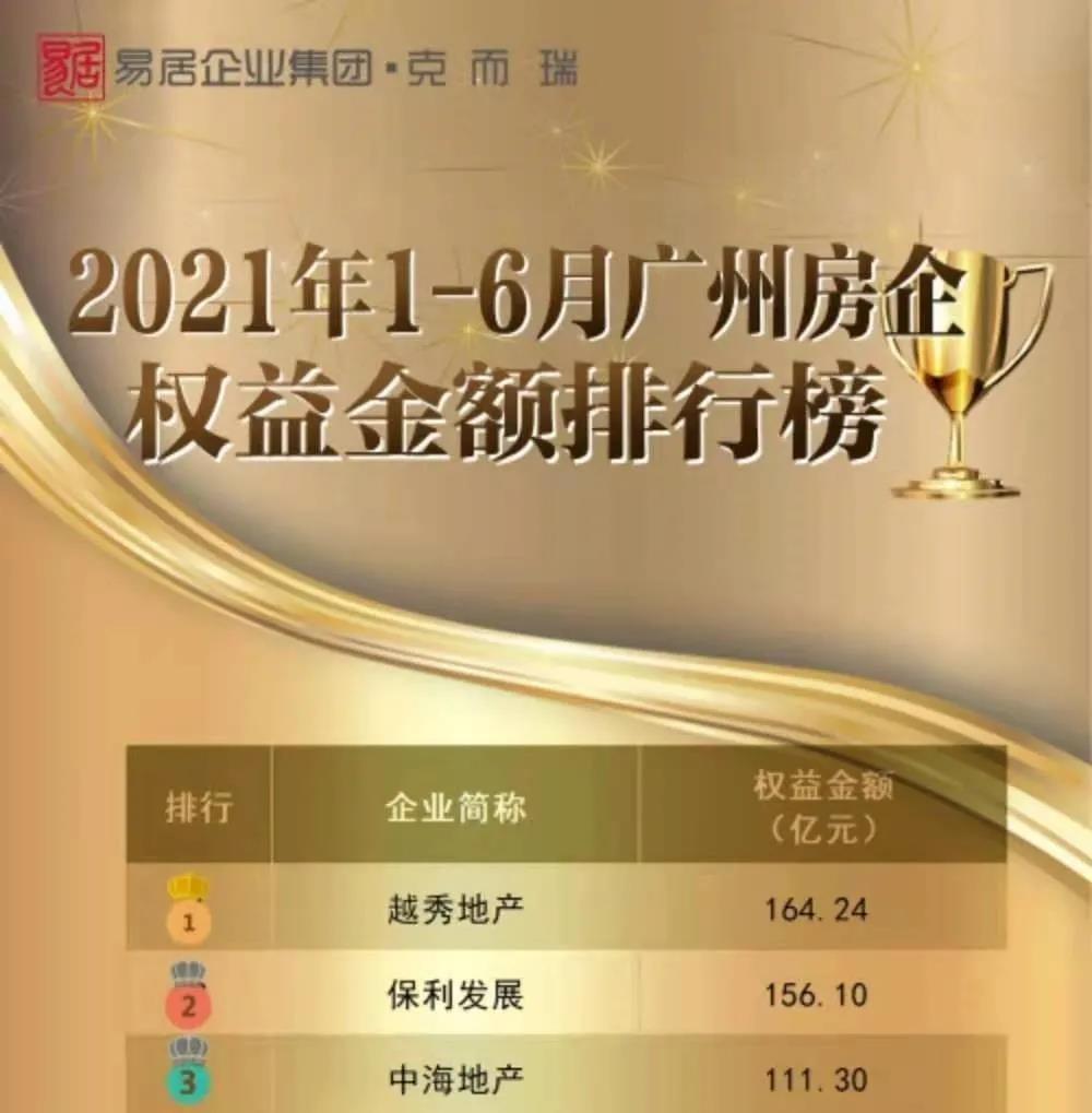 《2021年上半年广州房企销售排行榜》正式发布,越秀地产斩获双料冠军