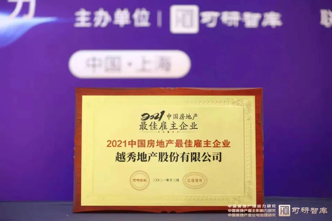 越秀地产获得“2021中国房地产最佳雇主企业”荣誉称号
