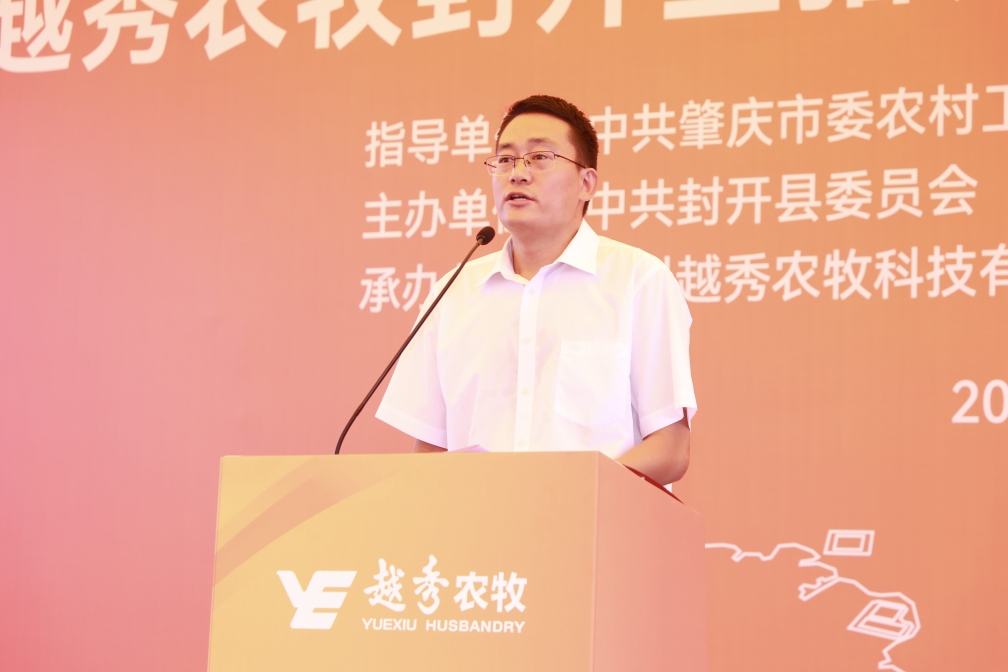 肇庆市委常委、封开县委书记秦波在致辞中向越秀封开生猪养殖一体化项目的开工表示祝贺。他指出,越秀集团是横跨一二三产业的大型综合性国有企业,越秀食品是粤港澳大湾区领先的全产业链食品产业集团。越秀农牧封开生猪养殖一体化项目从签约到全面动工仅用1年的时间,集团以高度的战略思维、深厚的战略情怀,一流的团队、一流的进度效果狠抓落实,充分体现了新时代国有企业的强大实力、责任担当和优良作风。肇庆市、封开县各级部门将在政策扶持、要素保障、政务服等方面给予项目全方位的支持,全面推动项目建设,争取早日竣工达产。